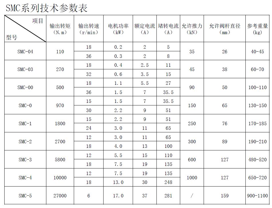 SMC 系列閥門電動裝置是一種多回轉(zhuǎn)型閥門電動裝置,是引進(jìn)美國里米托克(Limitorque)技術(shù)產(chǎn)品,該產(chǎn)品已廣泛用于石油、化工、水電、冶金、造船、輕工、食品等工業(yè)部門。該系列產(chǎn)品可以單臺控制,也可集中控制,可現(xiàn)場操作,也可以遠(yuǎn)距離控制室控制。該產(chǎn)品除戶外型(基本型)外,還有防爆型(防爆等級dIIBT4)、整體型、整體防爆型、高溫高速型、耐輻射型、自動調(diào)節(jié)型、雙線型、雙速型、遙控型等。根據(jù)用戶需要還可以制成耐水型、耐寒型、船用型及防火型等不同防護(hù)類型的產(chǎn)品,能夠滿足用戶多方面要求。
