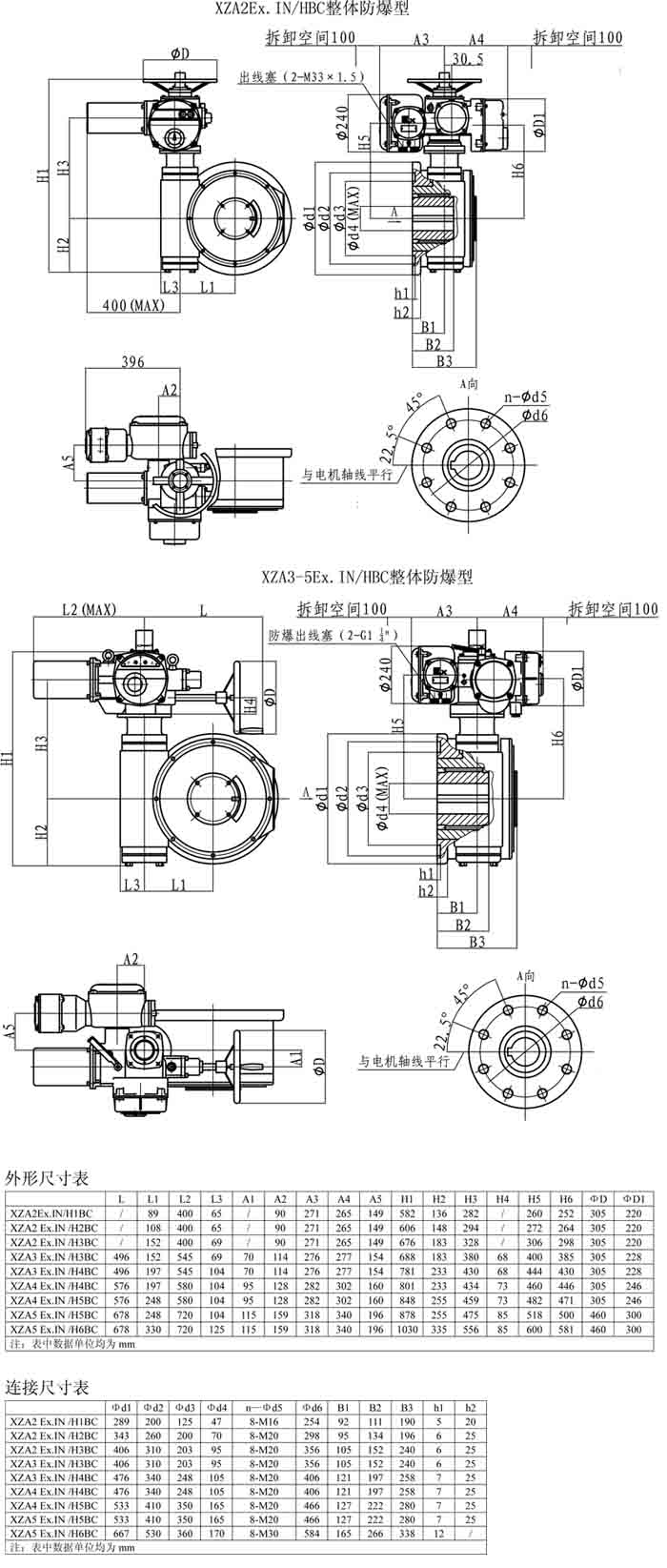 XZA-HBC防爆型產(chǎn)品外形及連接尺寸