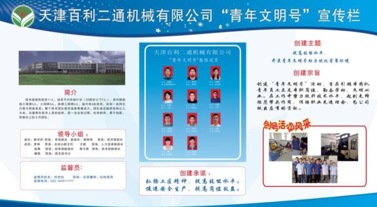 創(chuàng)建“青年文明號”活動,旨在引領本團隊青年員工立足本職崗位,勤奮勞動,文明從業(yè)。在工作中努力提升技術水平,起到先鋒模范帶頭作用,傳播職業(yè)先進理念,為公司做出應有的貢獻。