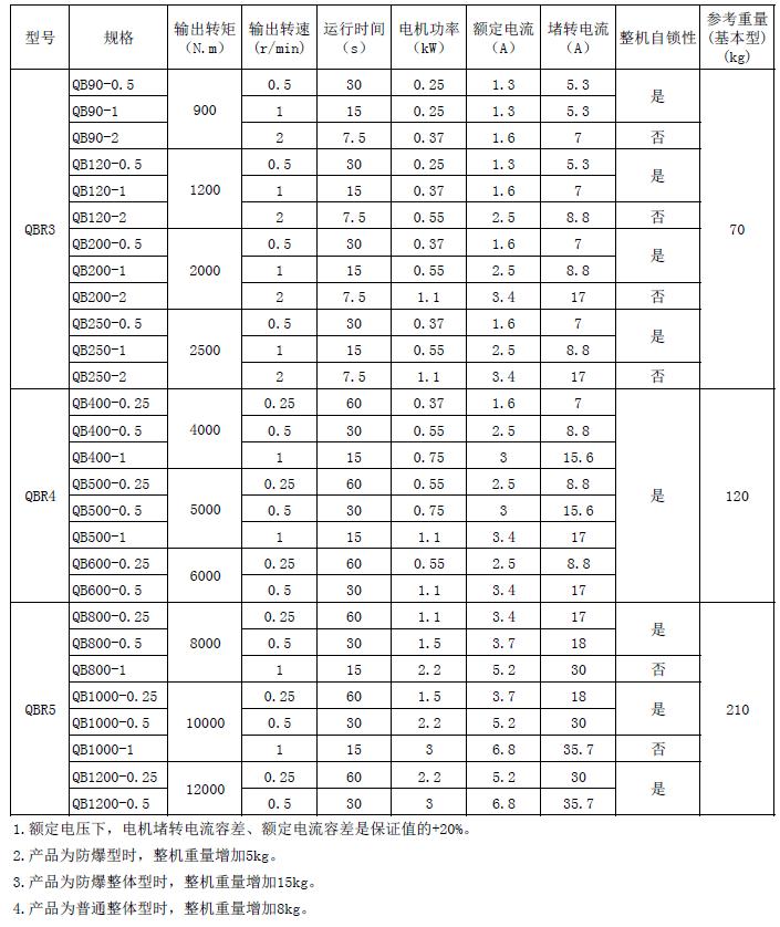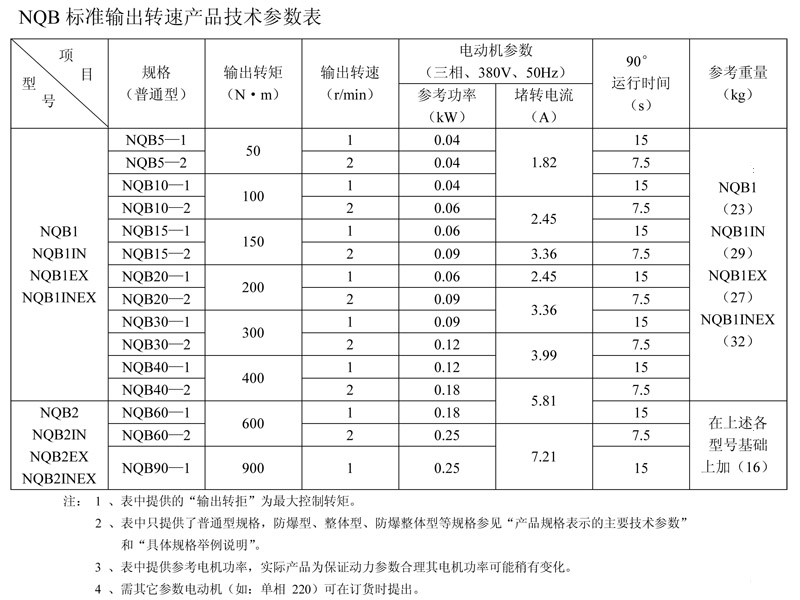 NQB1、 NQB2 電動(dòng)裝置在繼承QB1、QB2 優(yōu)點(diǎn)的同時(shí)又增設(shè)了產(chǎn)品的使用功能,它適用于小口徑球閥、蝶閥、旋塞閥等閥瓣工作中90°回轉(zhuǎn)閥門(mén)和類(lèi)似機(jī)構(gòu)的控制。該產(chǎn)品與閥門(mén)組合后可廣泛地應(yīng)用于石油、化工、電力、市政、冶金、食品、輕工等工業(yè)領(lǐng)域的管道控制系統(tǒng)。 QBR3~QBR5是我公司研制的部分回轉(zhuǎn)閥門(mén)電動(dòng)裝置,控制轉(zhuǎn)矩范圍:900N.m~12000N.m。該電動(dòng)裝置可與球閥﹑蝶閥等閥瓣做90°回轉(zhuǎn)的閥門(mén)組合成電動(dòng)閥門(mén),其功能是控制閥門(mén)的啟閉。