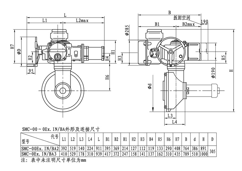 SMC/BA系列電動裝置是SMC系列中小轉矩多回轉電動裝置與BA圓錐齒輪減速器的一種組合型式,它適合閘閥、截止閥等多回轉閥門的驅動控制。SMC/BA電動裝置具有以下特點:以較小轉矩規(guī)格的SMC電動裝置與BA減速器組合可獲得更大的輸出轉矩。在輸出轉速允許的條件下,選用該產(chǎn)品能夠提高所選電動裝置規(guī)格的通用性,便于產(chǎn)品的使用、維護。