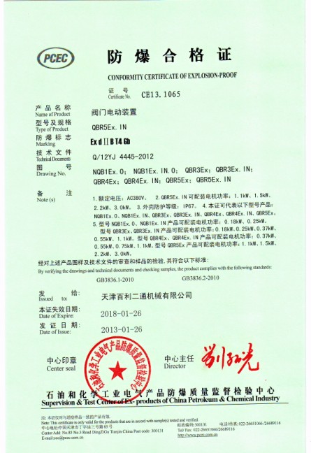 QBR3~QBR5是我公司研制的部分回轉閥門電動裝置,控制轉矩范圍:900N.m~12000N.m。該電動裝置可與球閥﹑蝶閥等閥瓣做90°回轉的閥門組合成電動閥門,其功能是控制閥門的啟閉。該電動裝置能夠進行單機或多機室內(nèi)控制遠距離控制電動操作和現(xiàn)場手動或電動操作,可廣泛地應用在具有管道閥門的工業(yè)系統(tǒng)。該產(chǎn)品的防護等級為IP67,隔爆型產(chǎn)品(型號中有Ex)的隔爆等級 為dⅡBT4。